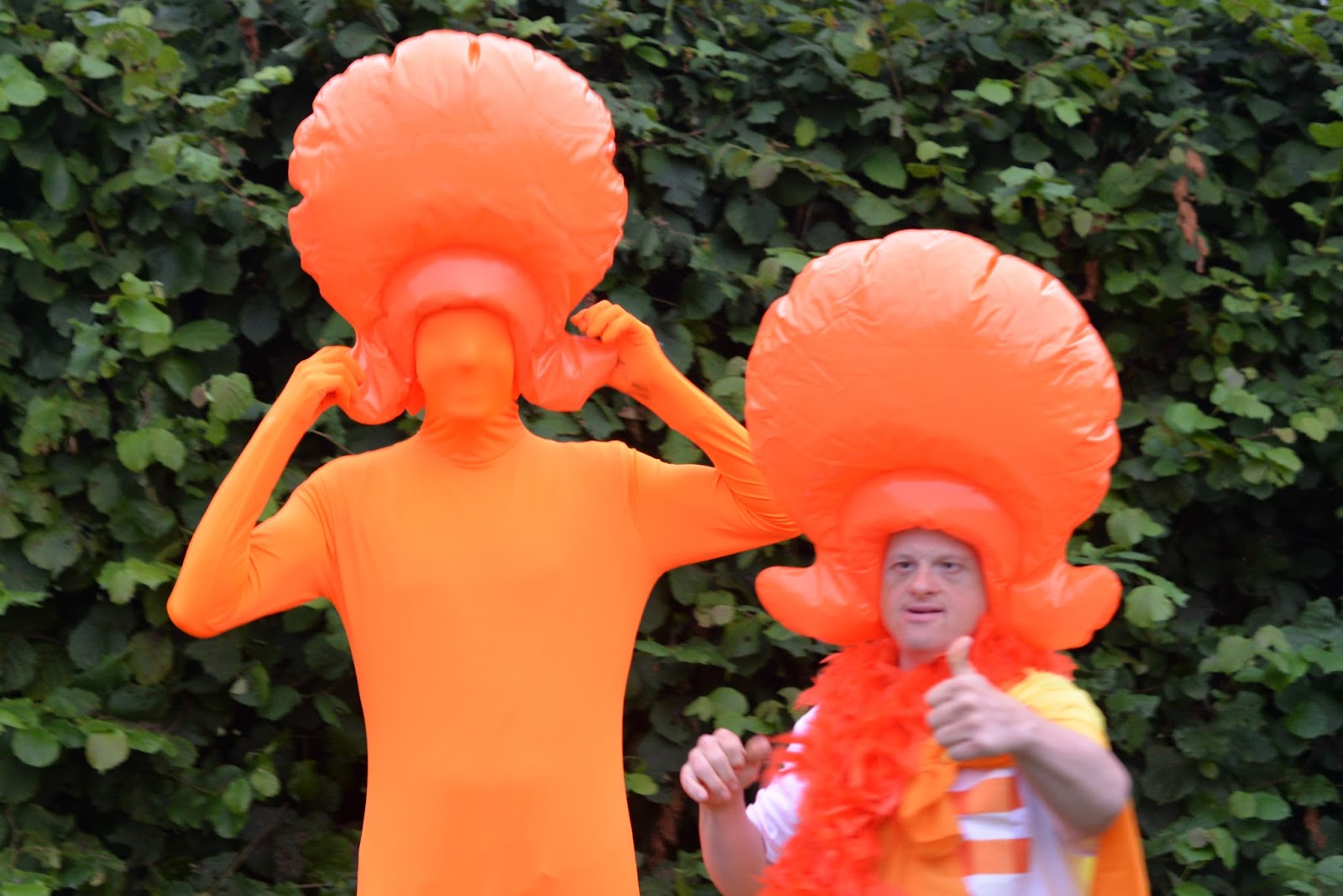 Allemaal verkleed op de foto. Van de gasten is een foto persoonlijk gemaakt, ook een met de begeleider. Ze mochten een foto uit kiezen die ze in een zelf geknutselde lijst plaatsen.